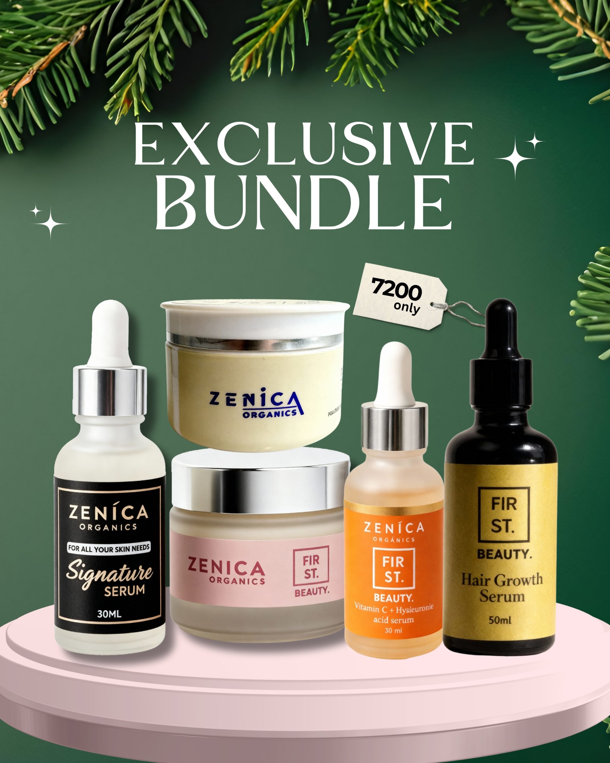 The Zenica Organics Exclusive Bundle is your ultimate self-care set, combining our best-loved serums and creams for head-to-toe care. Crafted with care and balance, it helps keep your skin refreshed, radiant, and your hair feeling strong and smooth.